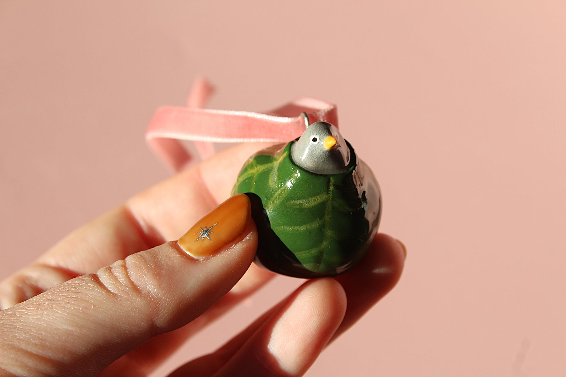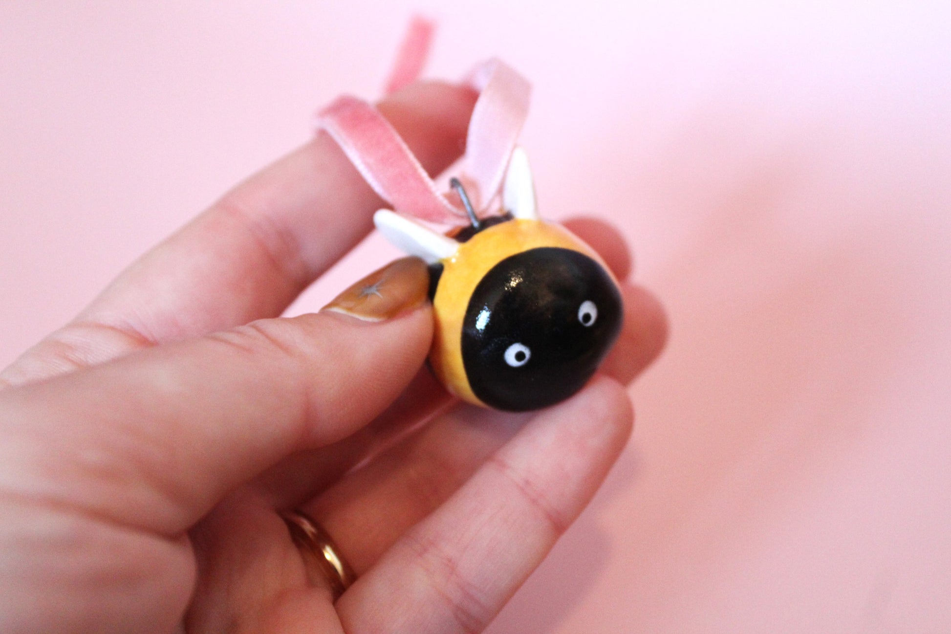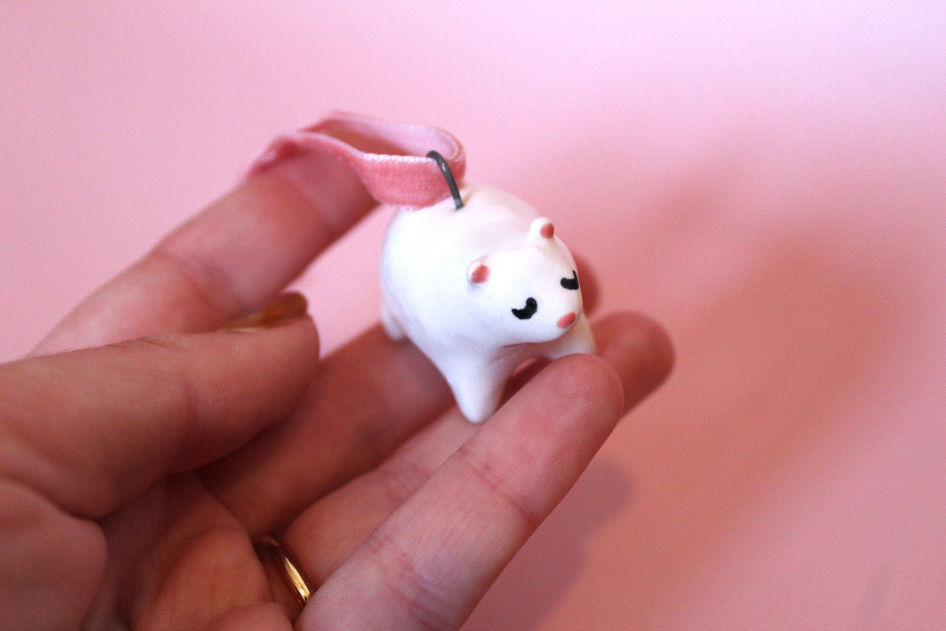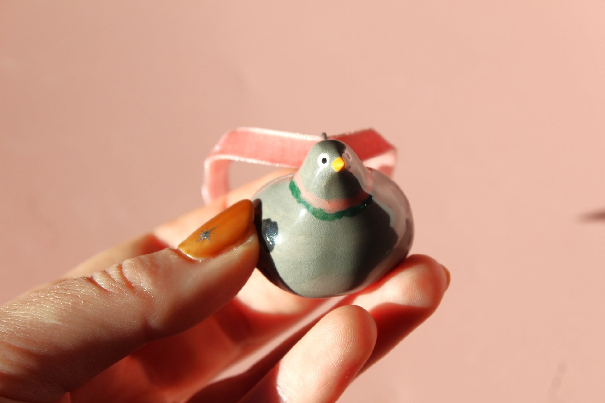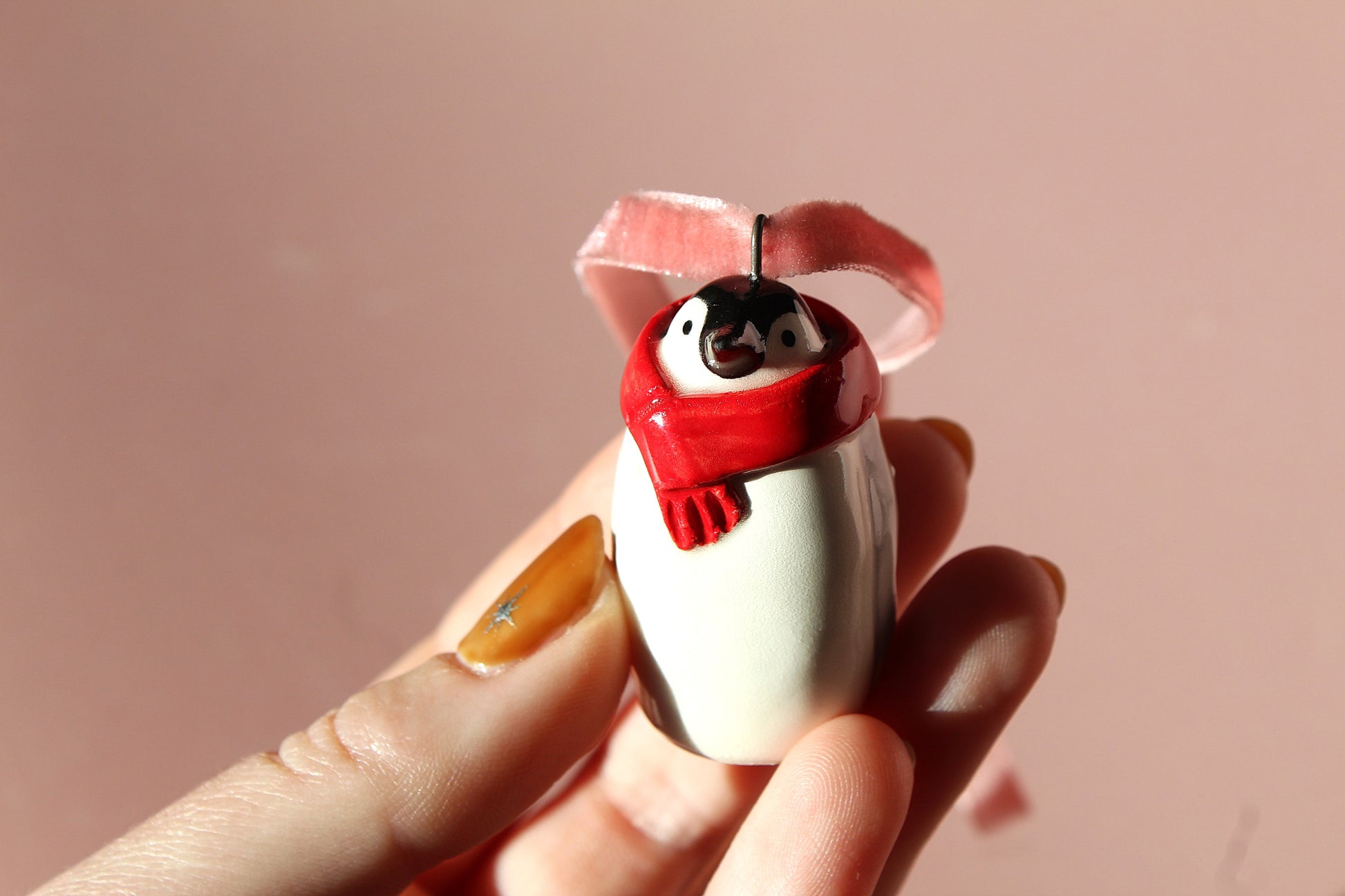 Decorate your tree with ceramic pieces - each fixed with metal loop and pink velvet ribbon so you can hang them on your tree.