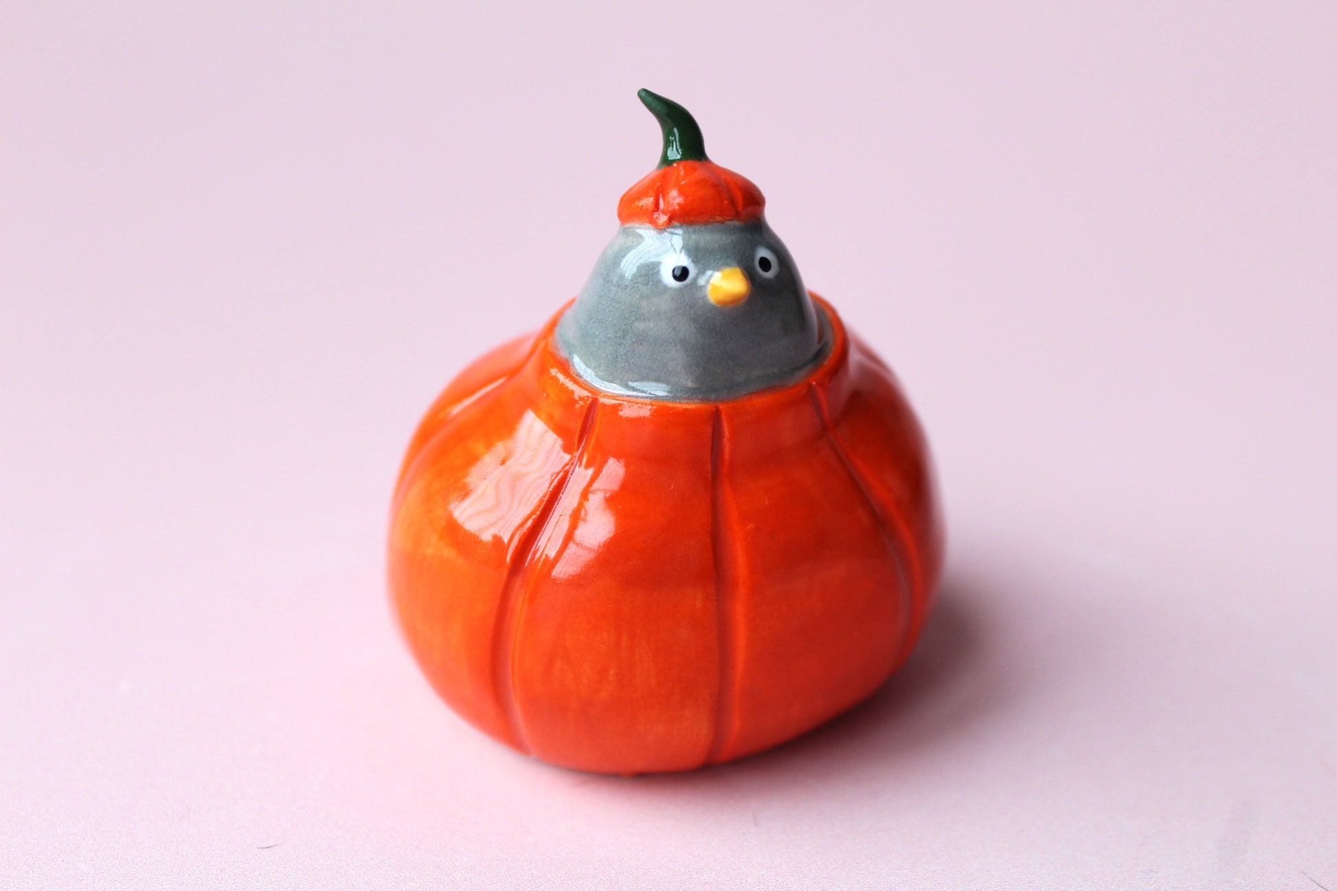 Pigeon dressed up as a pumpkin for halloween! Need I say more?