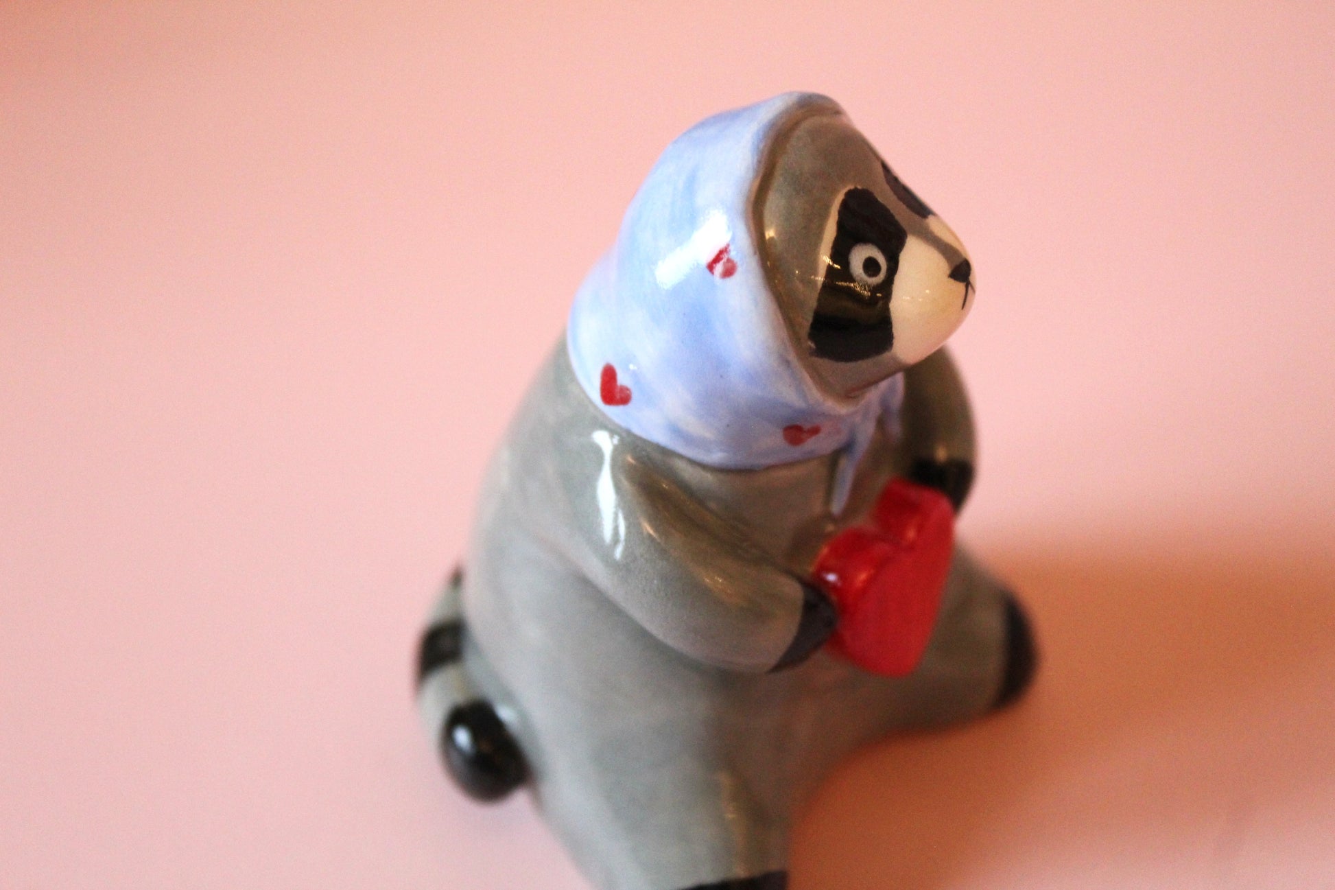 Raccoon holding a heart