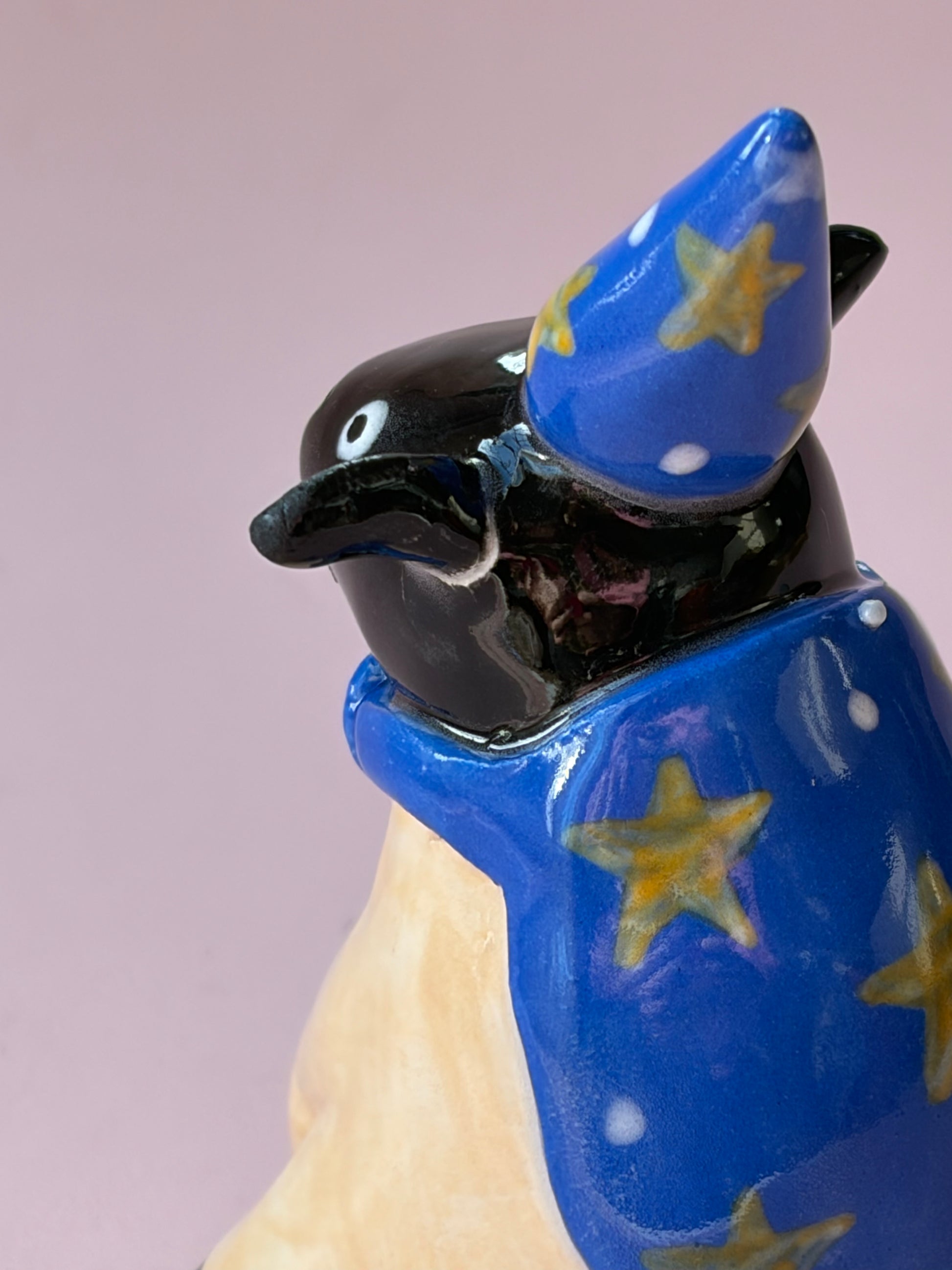 Sheep dressed up as wizards for halloween! They wear a pointed hat and cape in blue, adorned with yellow stars.